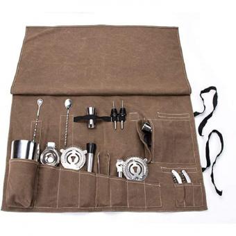 Large Barware Set Roll Bag, Cocktail Making Tool Set Bag, Portable Bar Case Bag, Cocktail Accessories Kit Roll Pouch Size / Color / Logo / Bag all can be customized MOQ : 500 units
